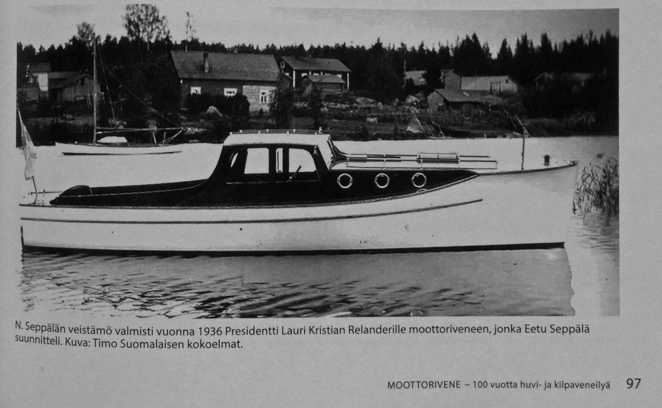 Nettiveneessä on ilmoitus Nestori Seppälän 1930-luvulla rakentamasta moottoriveneestä. Kuopiossa on myytävänä muodollisella hinnalla moottorivene, joka ilmeisesti on Nestori Seppälän veistämön rakentama. Vene tarvitsee kunnostusta, mutta siitä saisi hienon käyttöveneen. Veneessä on N. Seppälän veistämön kyltti. Moottori on kolmesylinterinen Wickström. Sarjanumeron perusteella se on vuodelta 1976 tai 1977 tai 1978. Vene on tyyliltään samanlainen kuin Nestori Seppälän pari muuta venettä, ja myös Sulo Lönnqvist on Loviisassa rakentanut aivan samantyylisen veneen. Näistä on kuvat Moottorivene-kirjassa. Veneen ilmoituksen ID numeero on 863133. Myyjä on Arto Kirsikka-aho, puhelin 050-5232589, ja sähköposti info@cartos.fi VENE ON MYYTY JA SE KUNNOSTETAAN |