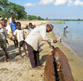 The construction of canoe begings with selecting and felling a proper tree, usually acacia. The log stays in water several days. Both ends of the log are first sharpened to be bow and stern. The bottom is flattened to give more stability. Then the log is hollowed up, little by little, starting from upper side of the log. The log is kept in water. It takes usually at least three weeks to make one canoe.