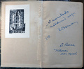 Kirjassa on omistajan Sulho Aarman exlibris ja signeeraus - hän on hankkinut kirjan kesällä 1955.