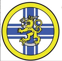 …särskild flagga och vimplar med anbringande i övre fältet närmast stången av föreningens särmärke: ett cirkelrunt vitt fält omgivet av en guldgul rand, i det vita fältet ett upprättastående blått kors, omgivet av en smal vitt och blå rand, i korsets centrum ett guldgult lejon vänt mot stången…