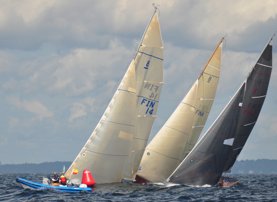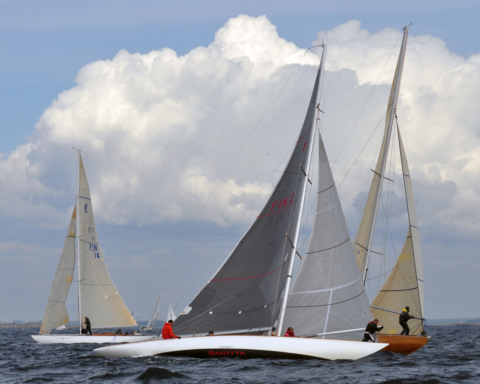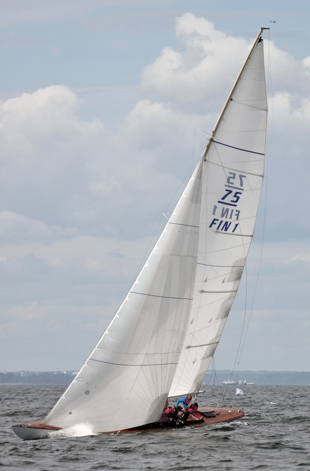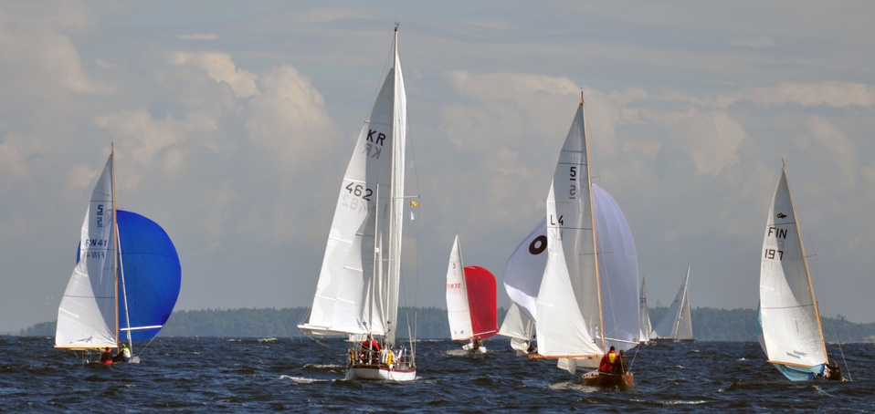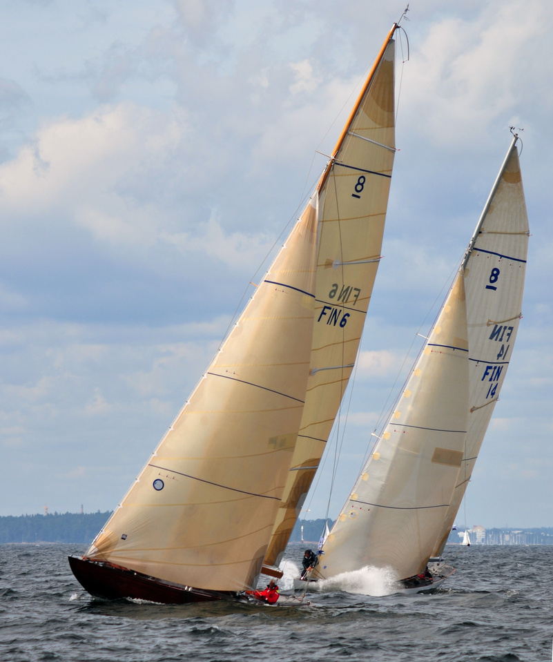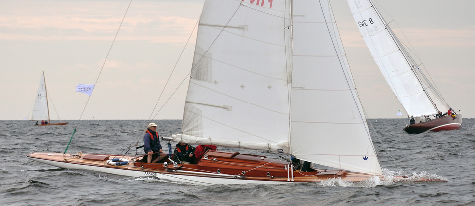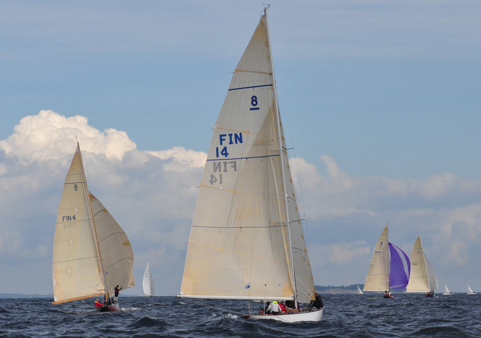 The Classic Baltic Circuit was sailed at Helsinki-waters on 6-7 August. The regatta has been named as the HSS Champagne Nicolas Feuillatte Regatta 2011. About 30 boats participated, besides the Finnish boats two from Sweden, and three from Sankt Petersburg. The Swedish bats were the 10 mR Itaka, who won last year the whole circuit, and Vagabonde KR S-319. Vagabonde was constructed by Olle Enderlein and she was built in 1957. The Sankt Petersburg boats were the 8 mR Astra, and two L6-boats, Lilya and Onega.