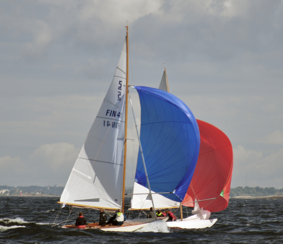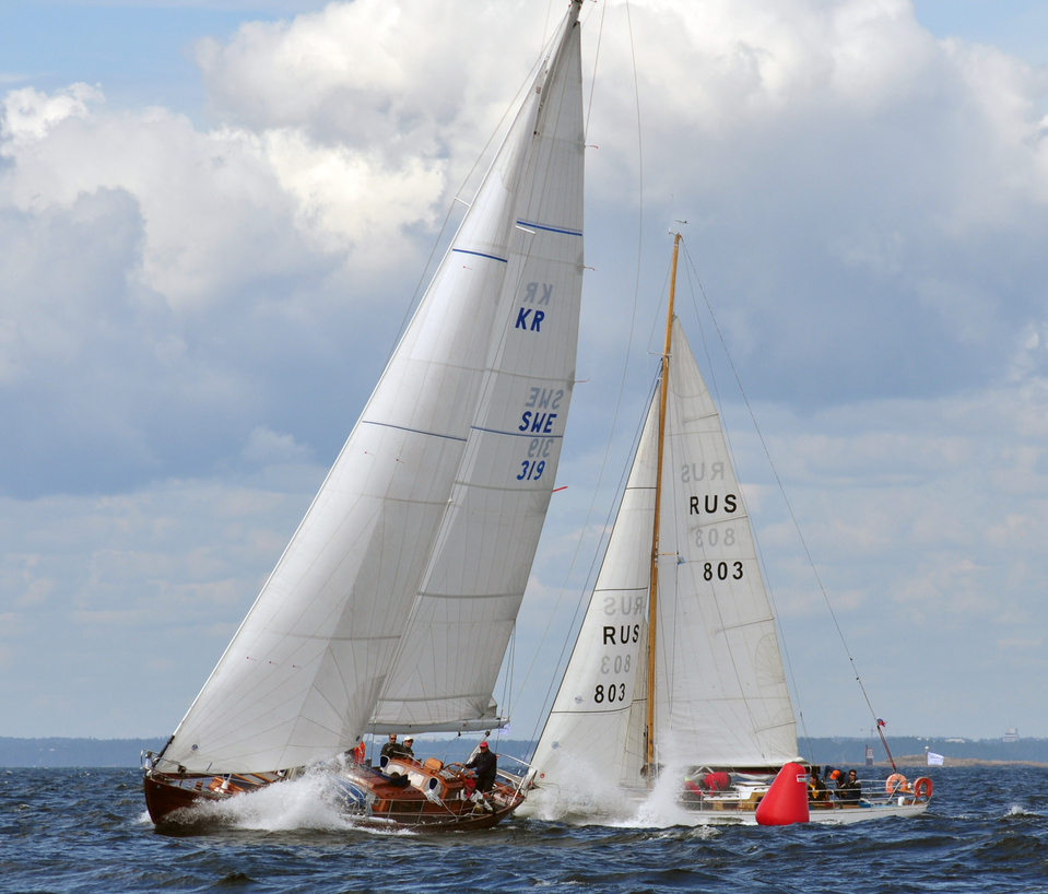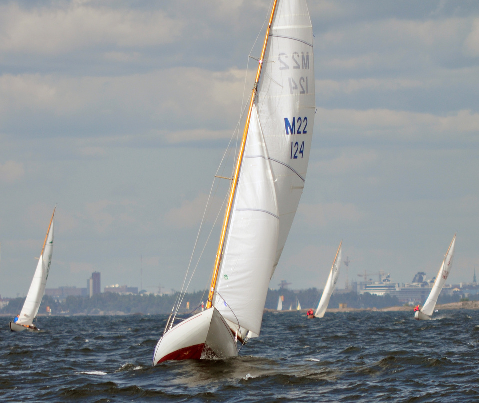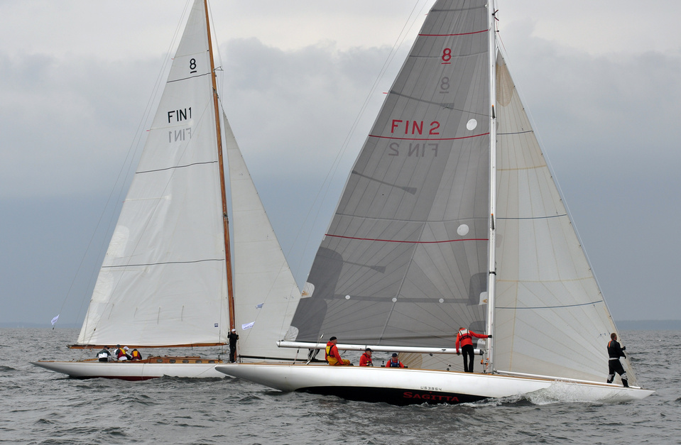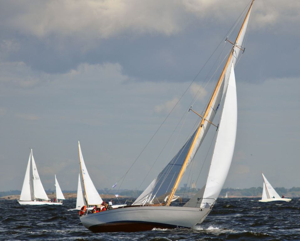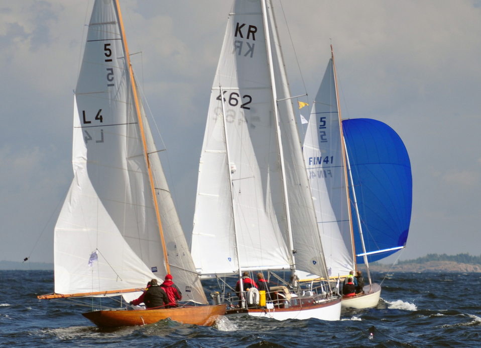 The Classic Baltic Circuit was sailed at Helsinki-waters on 6-7 August. The regatta has been named as the HSS Champagne Nicolas Feuillatte Regatta 2011. About 30 boats participated, besides the Finnish boats two from Sweden, and three from Sankt Petersburg. The Swedish bats were the 10 mR Itaka, who won last year the whole circuit, and Vagabonde KR S-319. Vagabonde was constructed by Olle Enderlein and she was built in 1957. The Sankt Petersburg boats were the 8 mR Astra, and two L6-boats, Lilya and Onega.