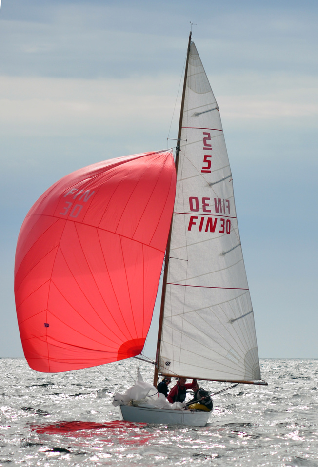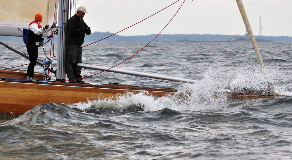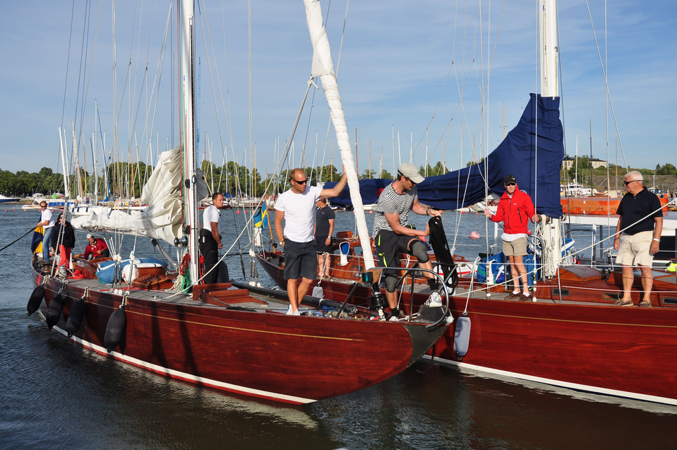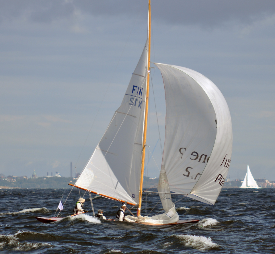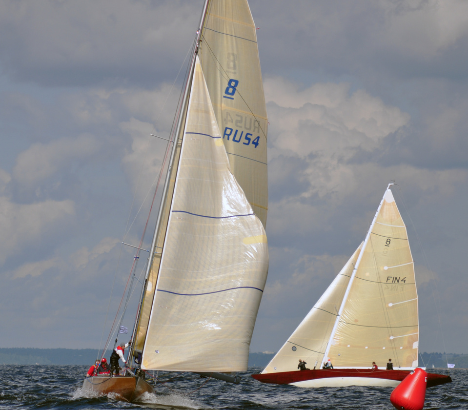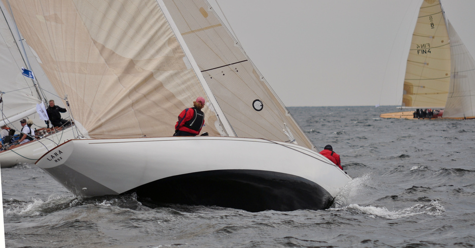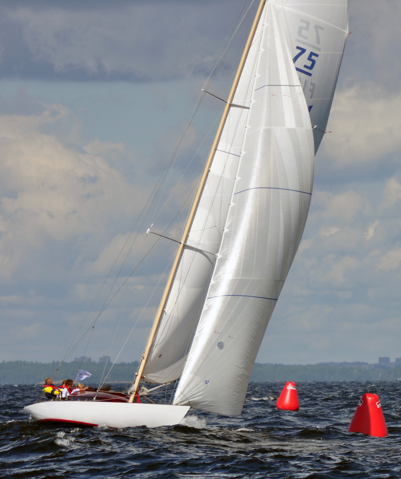 The Classic Baltic Circuit was sailed at Helsinki-waters on 6-7 August. The regatta has been named as the HSS Champagne Nicolas Feuillatte Regatta 2011. About 30 boats participated, besides the Finnish boats two from Sweden, and three from Sankt Petersburg. The Swedish bats were the 10 mR Itaka, who won last year the whole circuit, and Vagabonde KR S-319. Vagabonde was constructed by Olle Enderlein and she was built in 1957. The Sankt Petersburg boats were the 8 mR Astra, and two L6-boats, Lilya and Onega.