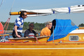 Heikko tuuli vaikeutti kilpailun läpiviemistä. Vasta iltapäivällä saatiin yksi startti purjehdituksi.
