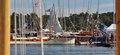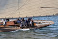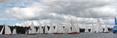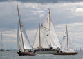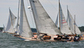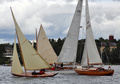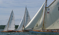 Olympiapurjehduksiin 1912 osallistuneiden veneiden paraati satamassa