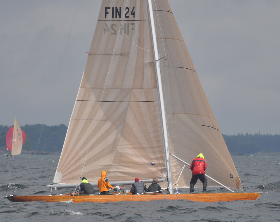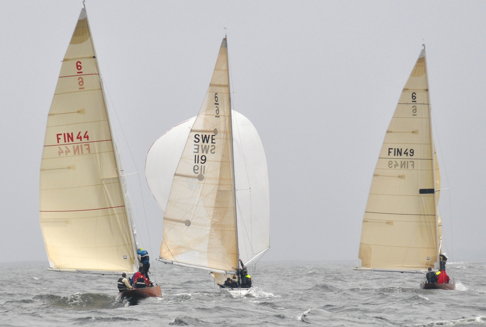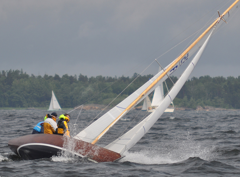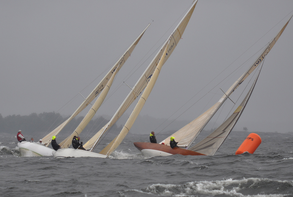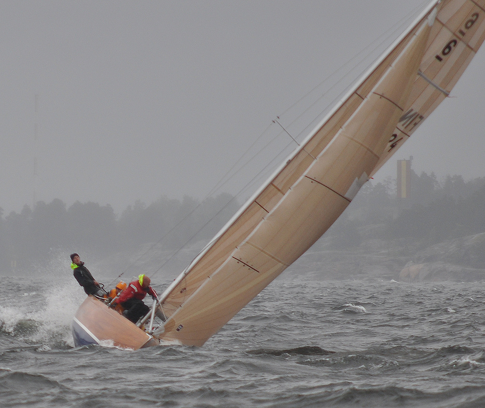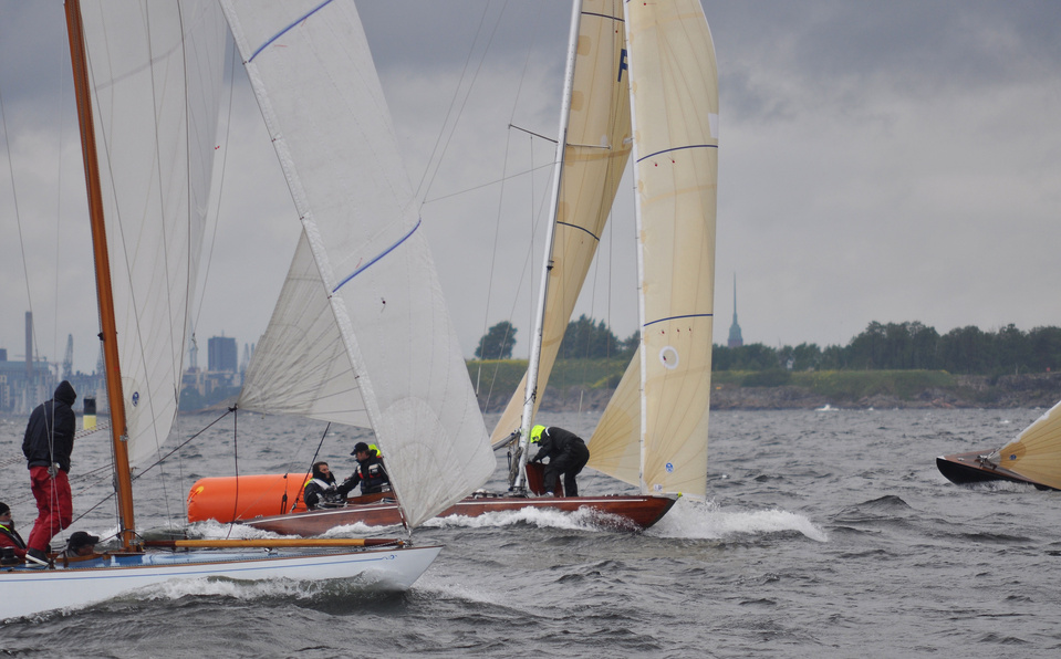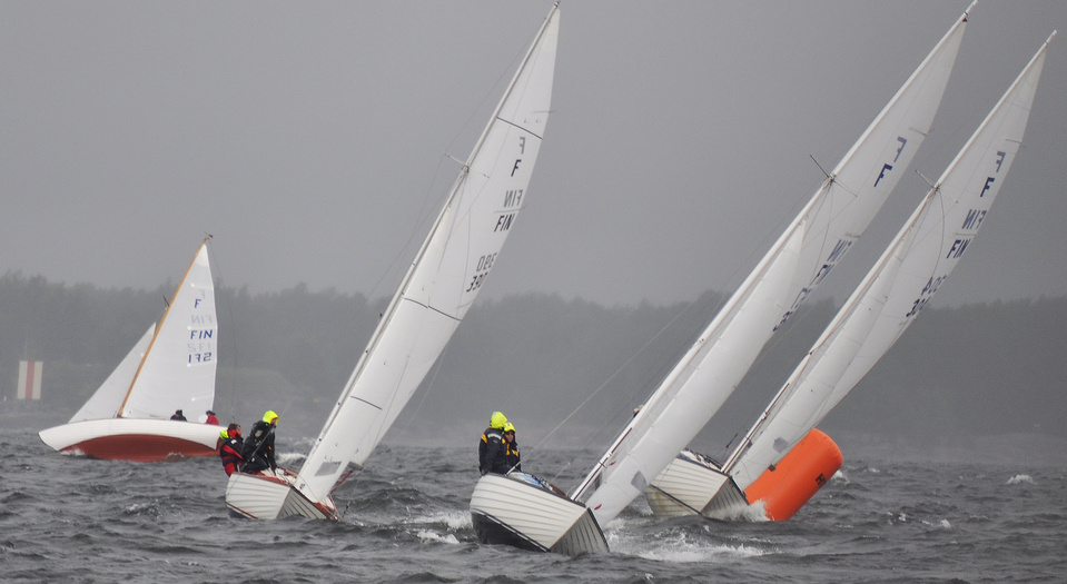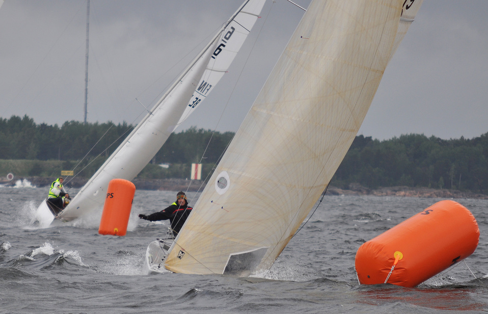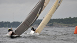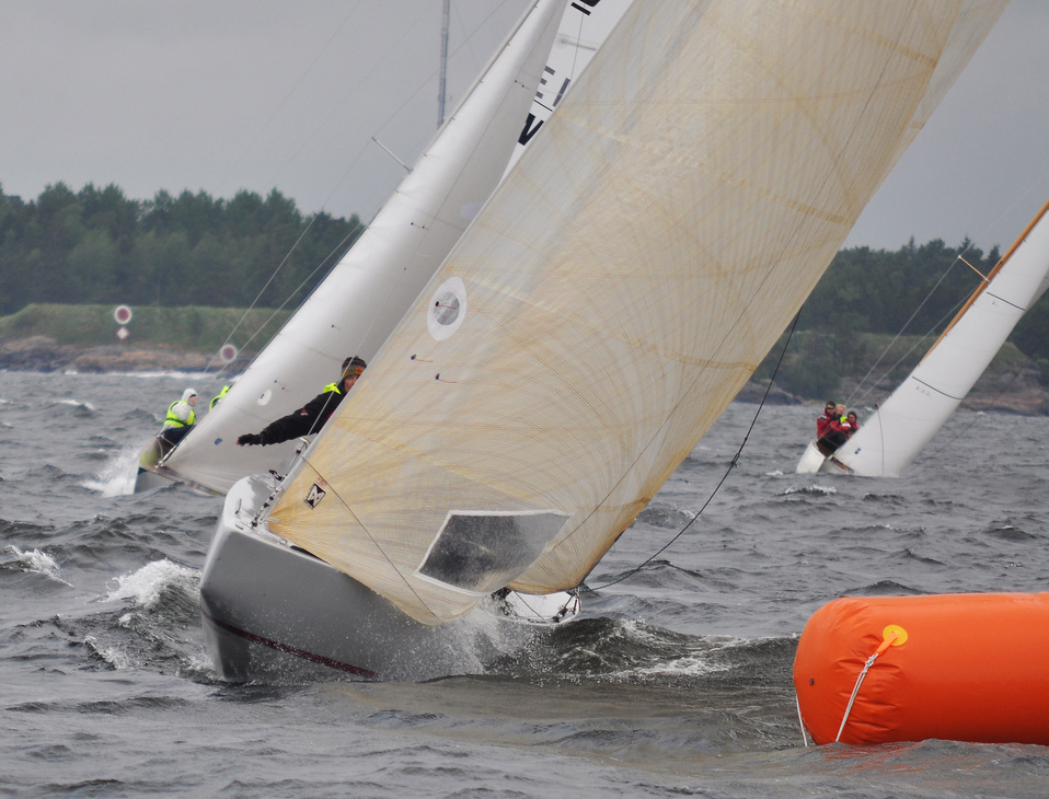Helsinki-regatta for keelboats was sailed on 18th June, in heavy rain and wind. On Saturday there was only one start. The pictures were taken at the upper mark.