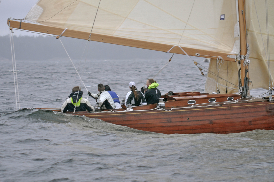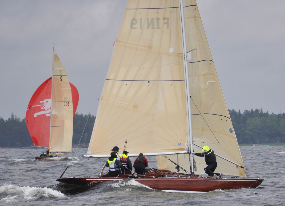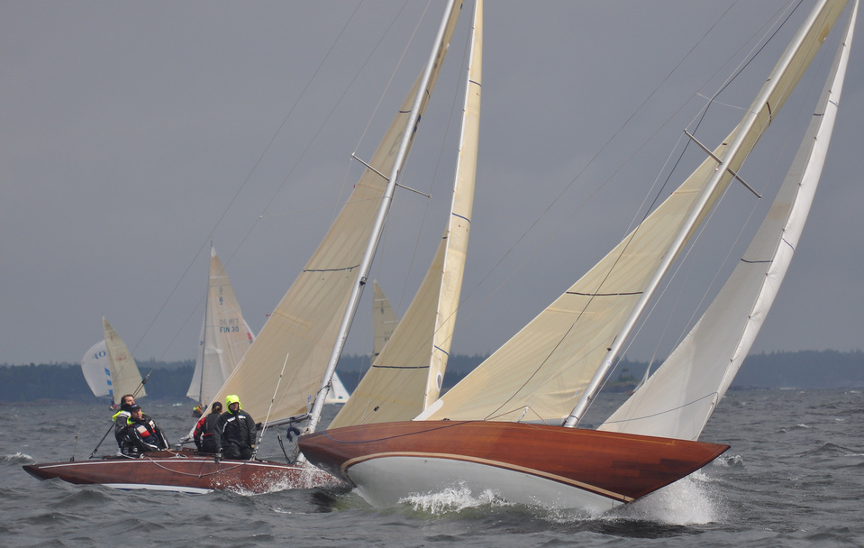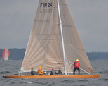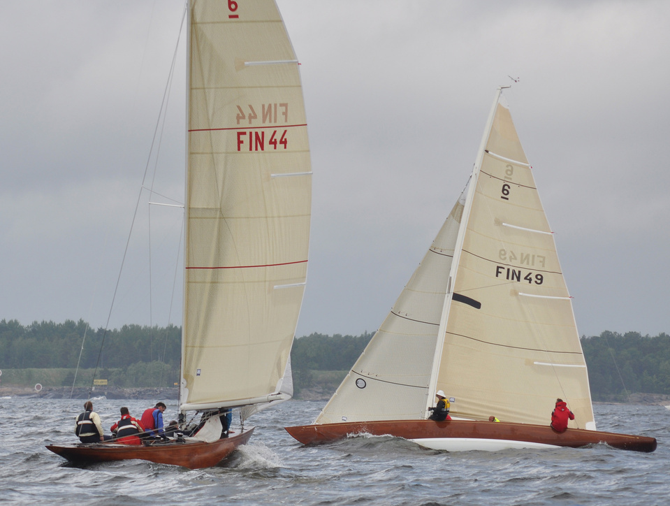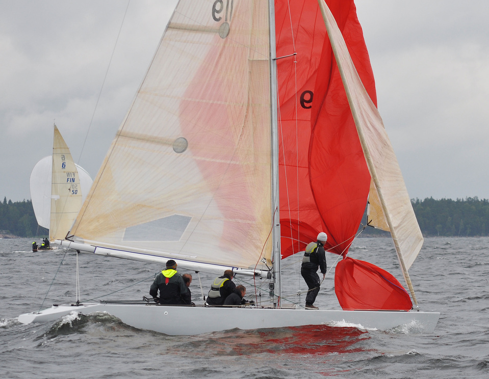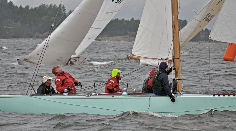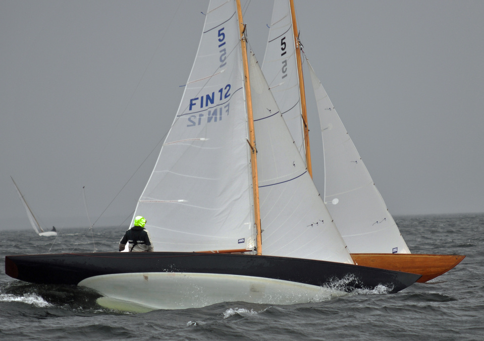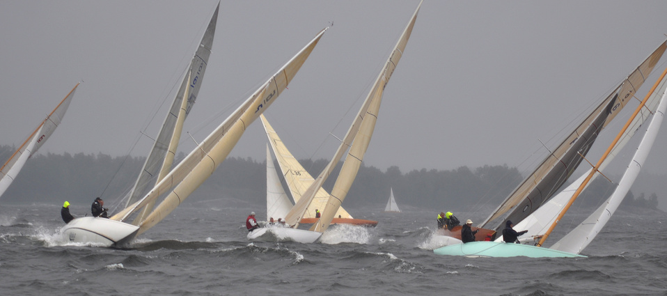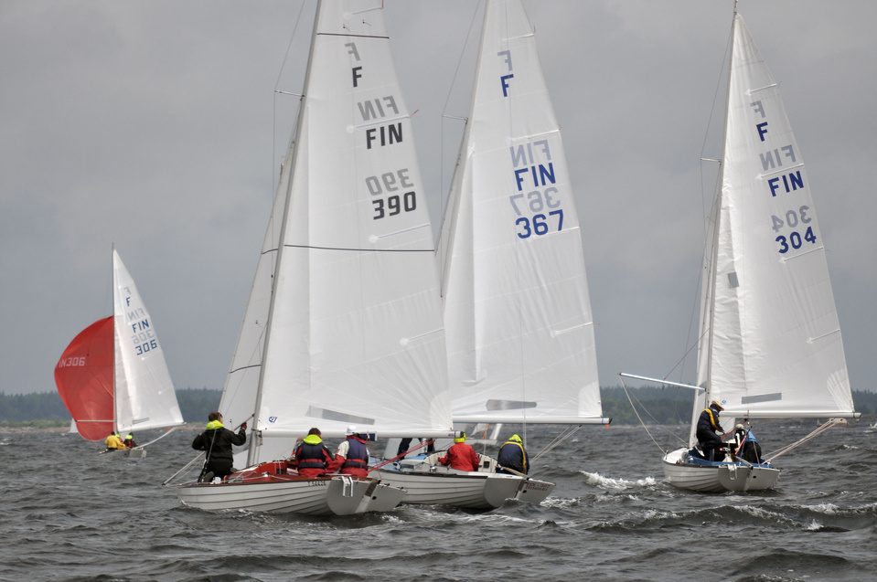 Helsinki-regatta for keelboats was sailed on 18th June, in heavy rain and wind. On Saturday there was only one start. The pictures were taken at the upper mark.