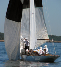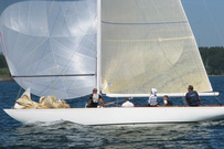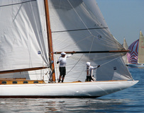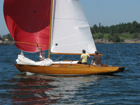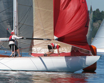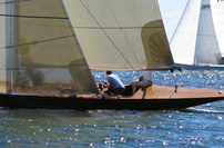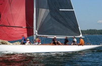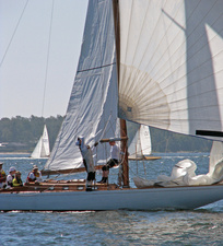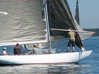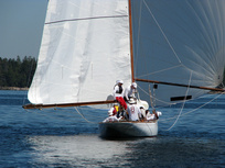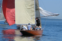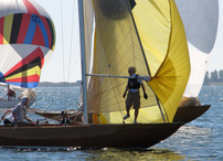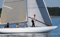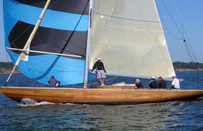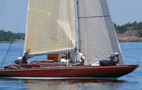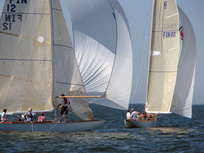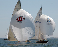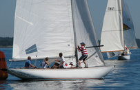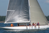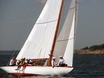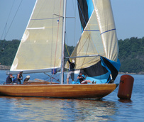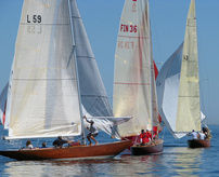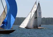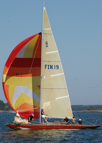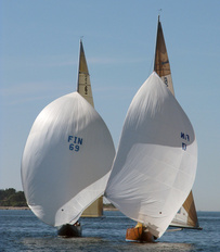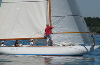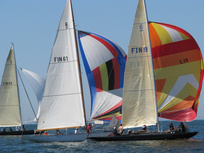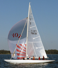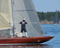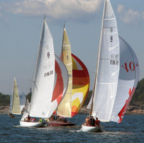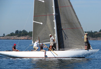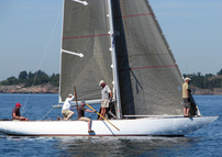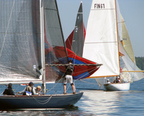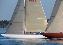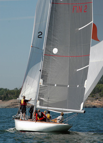 Helsinki-regatta was sailed on 3-4th July in light winds. Seldom one can follow the fleet of 20 6 mR -boats at one glance ! Interesting point was also to see two eight metres built in Sankt Petersburg sailing the same waters. Astra has sail number RUS-4 and Birgit SWE-44. They are new boats, based on Tore Holm´s old design.