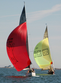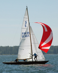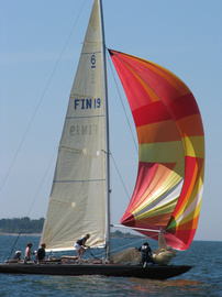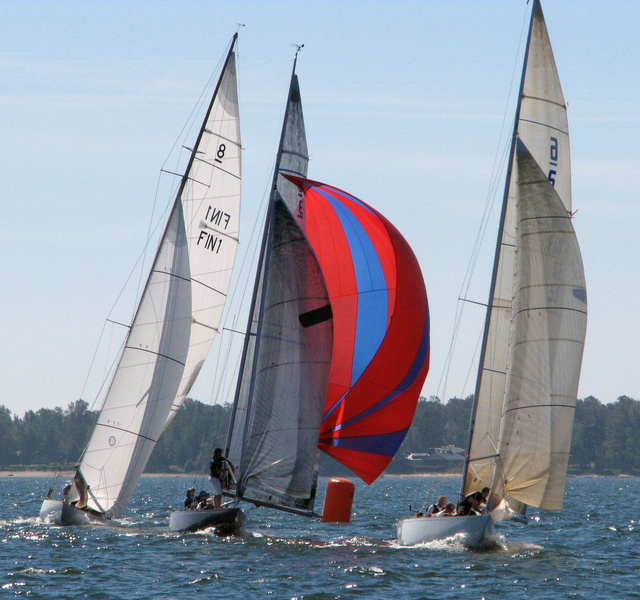Helsinki-regatta purjehdittiin 3-4.kesäkuuta kevyissä tuulissa. Kuutoslaivasto oli mahtava - parinkymmentä spinnua on harvinainen näkymä, ja kuutosia täydensi viisi kahdeksikkoa ja monta viitosta. Mielenkiintoista oli nähdä molemmat Pietarissa valmistetut kahdeksikot, Astra ja Birgit samalla radalla.