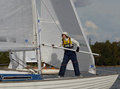 I didn't notice how he fell down, but could follow the efforts to get him off the sea. The Rib-boat drifts down the wind faster than the swimmer, and he doesn't reach the boat. The Dragon Angela (sic ! Angel) steers skilfully close by the swimmer and two persons get him quickly up.