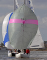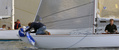 I didn't notice how he fell down, but could follow the efforts to get him off the sea. The Rib-boat drifts down the wind faster than the swimmer, and he doesn't reach the boat. The Dragon Angela (sic ! Angel) steers skilfully close by the swimmer and two persons get him quickly up.