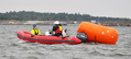 Kuutoset Marianne FIN-52 ja Fridolin FIN-12 hyvin lähellä toisiaan. Kuvat ovat heittolaukaisuja sateessa ja kaukaa.