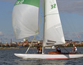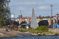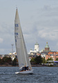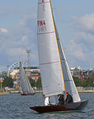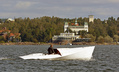 A very extraordinary vessel followed the Pro Sail regatta on Saturday. The name of the boat could be red at the stern - Guggenheim. The exceptional lines of the vessel remind us that Helsinki Design Week was opened at the very same weekend.