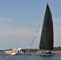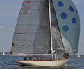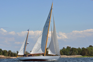 The yawl Navigator, owned by sea scouts, was seen near the R-boats. The original name was Clipper, when she was built by Åbo båtvarv 1947. The owner was industrialist Hans von Rettig.