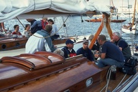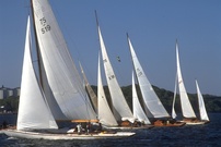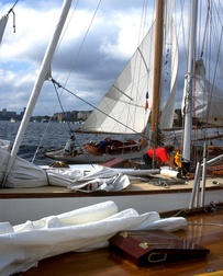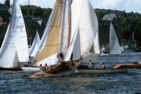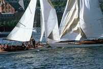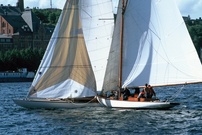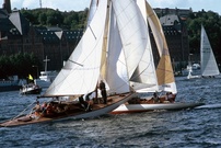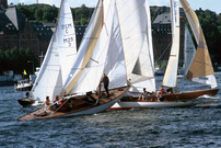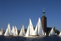 In the middle of Stockholm, on Riddarfärden in front of City Hall, classic sailboats have come together since 1960´s. The magnificent event, the Day of Sailyachts (Segelbåtens Dag), is unparalleled in Nordic countries. Nowhere else could be seen by one glance so many classic gaff-rigged boats over 100 years old, large square metres, R-boats and other rarities.