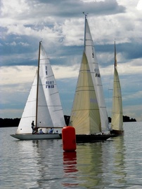 The northern wind was mostly weak, but during the last races a thunderclouds swept over the boats giving shower of rain. Pictures hereby are not in chronologic order, they just try to show the grand views of six metres.