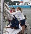 A very rare yacht was observad at the harbour: John G Alden's Triangle One-Design. This yacht was built by the Graves Yachts of Marblehead in 1927. Electra has been totally renewed at the Kotka Wooden Boat Center in 1999-2000.