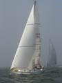 Kesän 2019 ensimmäisessä isossa kilpailussa oli kohtuullisen monta venettä, viitosia ja viis-viitosia kuitenkin vain pari. Mereltä työntyi paksu sumu, ja tuuli oli kohtalainen. Sumusta ilmestyi Lentäviä Hollantilaisia, eikä kuvaaminen onnistunut.