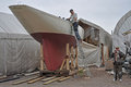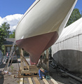Windyn lähes viisivuotinen korjausprojekti on valmistunut. Veneestä uusittiin lähes kaikki vedenalaiset osat ja paljon muuta. Omistaja Jyrki Halonen ja työn tekijä Mika Louhivaara vaikuttivat ilmeisen tyytyväisiltä tulokseen.