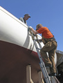 Windyn lähes viisivuotinen korjausprojekti on valmistunut. Veneestä uusittiin lähes kaikki vedenalaiset osat ja paljon muuta. Omistaja Jyrki Halonen ja työn tekijä Mika Louhivaara vaikuttivat ilmeisen tyytyväisiltä tulokseen.