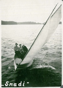 Toinen kuva vuodelta 1930 esittää kolmen kaverin purjehdusta pienemmällä veneellä, jota on vaikea määrittää, mutta joka muistuttaa "pojkbåt´ia". Vertailun vuoksi alempana on myös yhden pojkbåt´in kuva - se onPietarsaaressa ollut Bagatelle.
