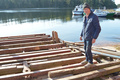 Ola Jonasson viittaa kiinnittymään ison moottoriveneen kylkeen. Pirttisaaren etelärannalla aurinko paistaa syyskuussa, on tyyntä ja kaunista. Ola Jonasson omistaa telakan ja veistämön Pirttisaaressa, sitä lähdemme katsomaan.