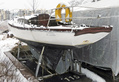 The ketch Corona has been on a boatyard in Helsinki without any shelter, and the effects of winter weather can be noticed already. Corona was designed by Arvid Laurin, and Valdemarsvik Båtvarv constructed her in Sweden in 1962. Corona has been a grand sailor, participated in several regattas in Helsinki waters. Evidently she could be still restored.